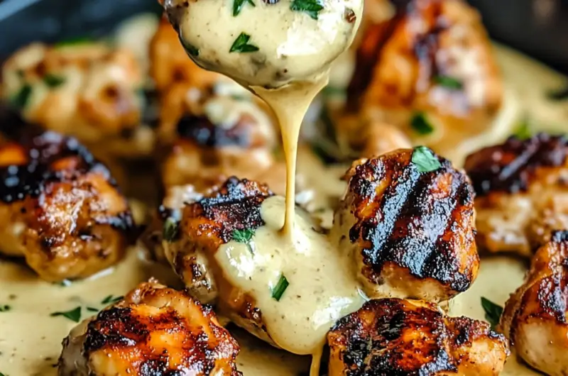 This recipe for How to Make the Best Creamy Garlic Sauce for Grilled Chicken Bites is perfect for anyone who enjoys bold flavors and simple cooking. The juicy chicken bites, paired with a rich, creamy garlic sauce, make for an irresistible dish that’s ideal for any occasion—be it dinner parties, casual meals, or meal prep. This dish stands out with its delightful flavor combination and easy preparation method.